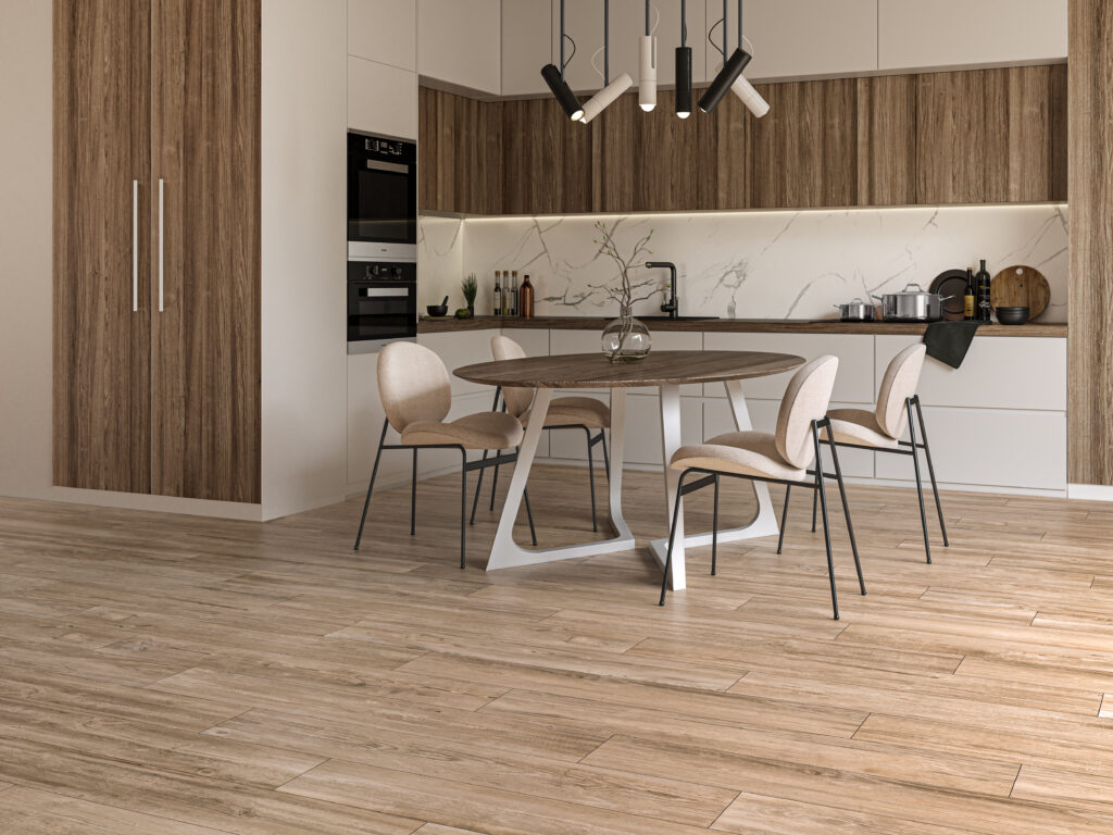 On aime tous se sentir cocooning à la maison. Alors, pour rendre tes espaces plus chaleureux et accueillants, le carrelage effet bois est la meilleure alternative au véritable bois. Contrairement à un parquet classique, le carrelage ne bouge pas dans le temps et est conçu pour résister à l’humidité et à l’usure. Tu n’auras donc plus besoin de te plier en quatre pour entretenir ton sol : un bon nettoyage quotidien avec un produit doux et hop, ton carrelage est “on fire” ! Tu disposes aussi d’une multitude de choix en teintes et tailles. Cerise sur le gâteau : il est souvent conçu pour être antidérapant !