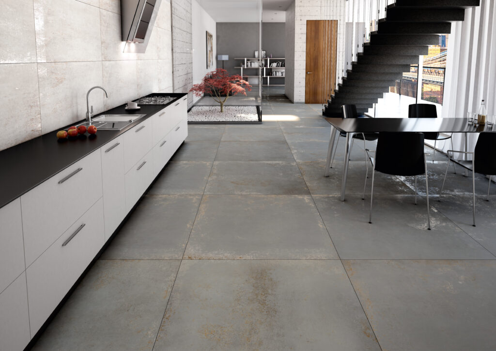 Tu es plutôt glam’ et chic ? Tu veux une pièce qui te ressemble ? L’effet métallique est le carrelage qu’il te faut pour ton projet. C’est un matériau qui permet de créer une atmosphère agréable et sophistiquée. Disponible en finitions dorées, argentées ou cuivrées, il est idéal pour créer des accents visuels dans des pièces comme la cuisine ou le salon. Encore une fois, le carrelage à effet est très facile d’entretien et robuste.